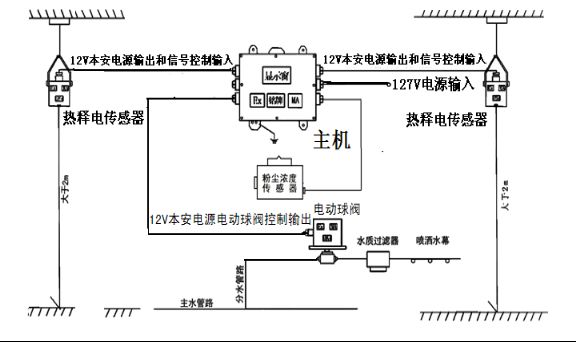 人通過灑水區(qū)域后,熱釋光控傳感器無信號輸出,延時所設(shè)定的時間后,電動球閥開啟繼續(xù)噴霧。可與煤礦監(jiān)控系統(tǒng)聯(lián)機,實現(xiàn)粉塵濃度狀況井上傳輸。